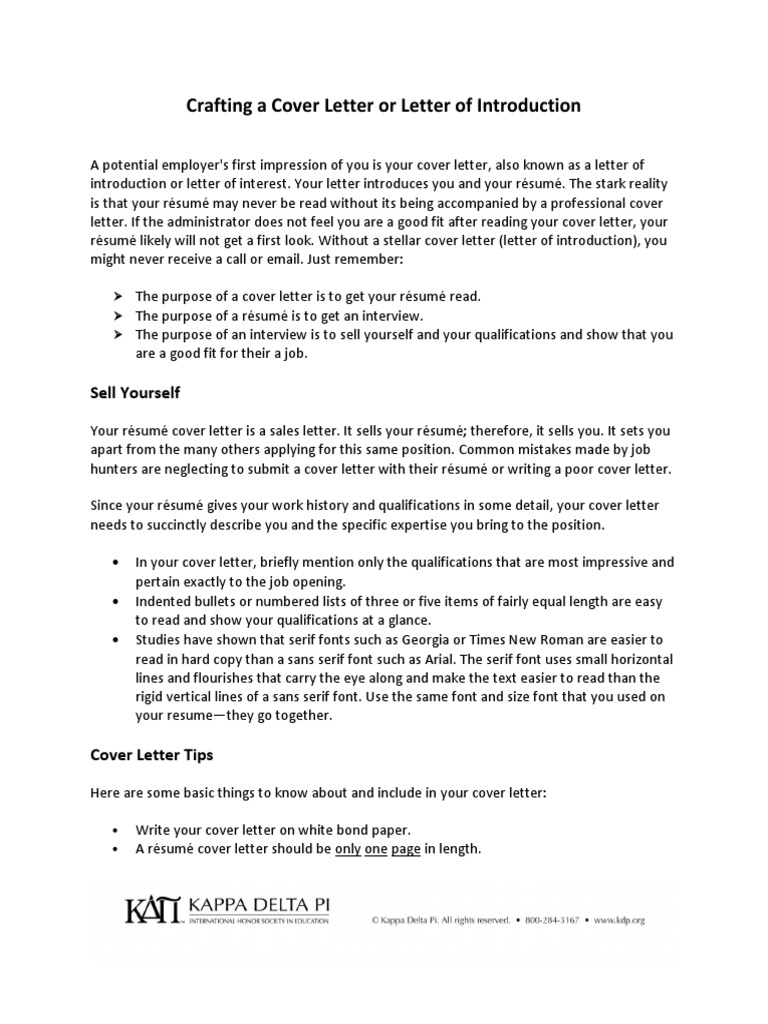 Cover Letter Introduction / Introduces you and your resume to an employer explains why you are writing or applying for the job details why you are a good match for the organization and the position. Write about who you are, where your expertise lies, where you found the job posting, and why you want to apply for the job. Fortunately, the formula for opening a successful cover letter is easy to follow. Sometimes, you'll mention a referral from a mutual acquaintance who told you about the job or passed on the hiring manager's name. Writing a great cover letter, or letter of introduction, doesn't have to be difficult. If your cover letter introduction is boring, it's not going to get the hiring manager's attention.